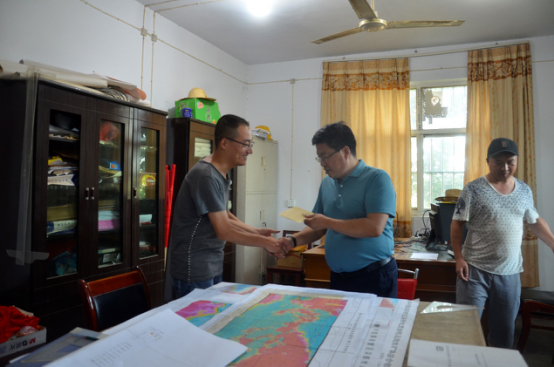 圖為白林科為小秦嶺物探項(xiàng)目組送慰問金