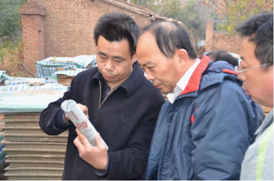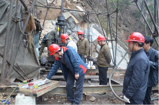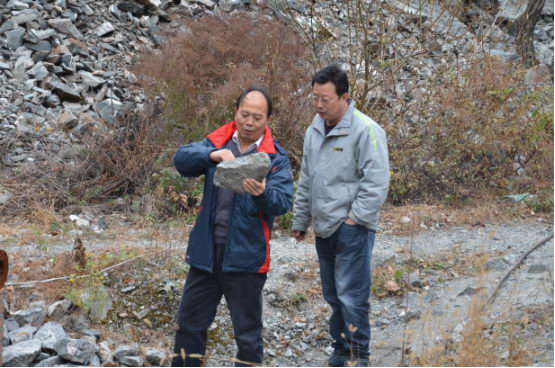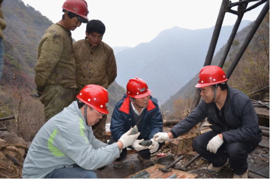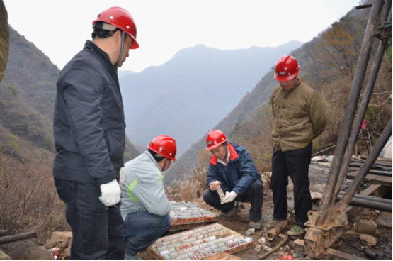 在工程公司善車峪薛家營機臺,適逢他們正在吊取巖芯。王隊長一邊查看剛剛?cè)∩蟻淼膸r芯,一邊與隨行的技術(shù)員探討該礦成分及該礦區(qū)的成礦規(guī)律,要求技術(shù)員要認(rèn)真分析做好巖芯的取樣、分析與化驗等后續(xù)工作,把工作做細(xì)做實。