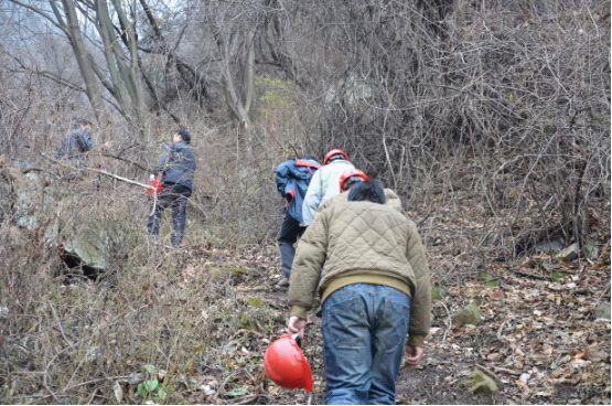 臨近中午,王隊長一行徒步前往工程公司善車峪殺人溝機臺。剛剛進入溝口,沙沙做響的樹葉給人感到陣陣寒意。殺人溝最近氣溫回升,前段的積雪融化,道路泥濘,給攀登本已非常陡峭的山路又增加了難度,每前進一步都是艱難而上。一路上,王隊詳細(xì)詢問了該機臺的生產(chǎn)任務(wù)完成情況及職工生活安排情況。當(dāng)?shù)弥摍C臺自10月初進駐以來,610米的鉆探任務(wù)已完成400米,如果近期天公做美的話,預(yù)計再有10余天就可完成任務(wù),隊長非常高興,利用登山的間隙,給大家講起了地質(zhì)人的軼聞趣事,讓大家感到親切又愉快,頗受教育,也使疲憊的身心得到了緩解,累意頓消。