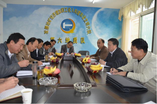 10月18日上午,省地礦總公司董事長、黨委書記梁楓在總公司有關(guān)部門負(fù)責(zé)人陪同下,在我隊進(jìn)行工作調(diào)研。