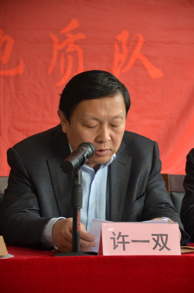 會議由隊黨委委員、隊長王根寶主持。西安市國資委黨委副書記兼紀委書記許一雙、西安市國資委正處級調(diào)研員胡國強、省地礦總公司黨委副書記兼工會主席吳學海、省地礦總公司工會常務副主席兼黨群工作部主任王建洲、省地礦總公司黨群工作部主辦科員姚鵬等上級領導出席了大會。許一雙副書記、吳學海副書記分別在會上作了講話。