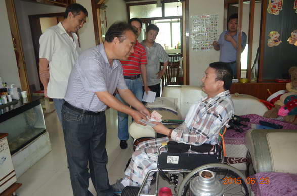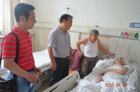 在患重病職工張有權(quán)家里,王書記仔細(xì)詢問病情恢復(fù)情況,并送上了慰問金。張有權(quán)雖不能流暢表達(dá),但是熱淚盈眶,緊緊拉住王書記的手。王書記叮囑張有權(quán)要好好養(yǎng)病,爭取早日康復(fù)。