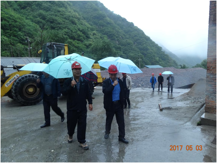 5月3日,陜西地礦集團(tuán)有限公司副總經(jīng)理馬貴鎖帶領(lǐng)檢查組冒雨深入我隊潼關(guān)礦區(qū)檢查指導(dǎo)安全生產(chǎn),隊黨委書記王戰(zhàn)社陪同。