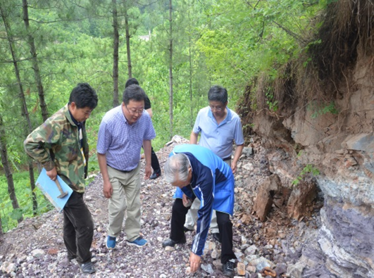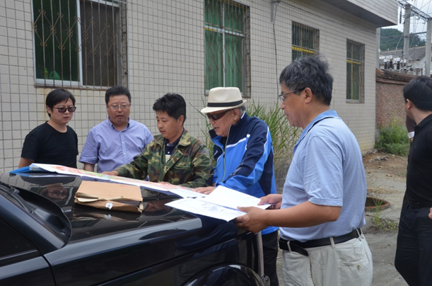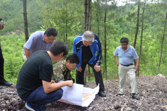 下午二點左右,老部長一行在劉曉東隊長和總工白和的陪同下到達洛南縣石門鎮(zhèn)項目部駐地,雖然年近八旬,但精神矍鑠,神采奕奕,不顧鞍馬勞頓,即讓技術(shù)人員將圖紙攤在了汽車引擎蓋上,聽取了隊長劉曉東、總工白和對商洛地區(qū)紫瑪瑙玉石礦賦存情況及全省寶玉石礦調(diào)查工作進展的匯報。