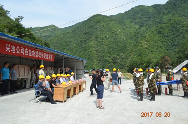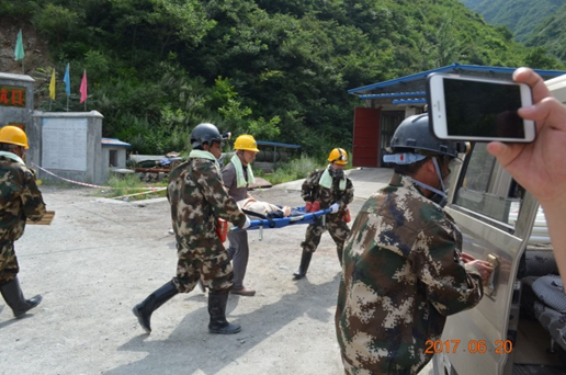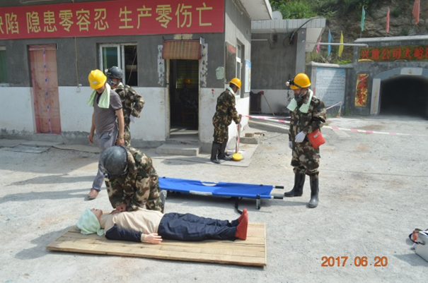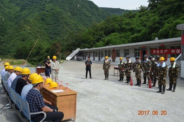 6月20日,盛夏酷暑,我隊(duì)在興地公司850坑口組織開展了礦山消防安全應(yīng)急演練。隊(duì)長(zhǎng)劉曉東、隊(duì)黨委書記王戰(zhàn)社親臨指導(dǎo)。潼關(guān)縣安監(jiān)局局長(zhǎng)朱曉軍等局領(lǐng)導(dǎo)及有關(guān)安全生產(chǎn)專家現(xiàn)場(chǎng)觀摩了演練。潼關(guān)縣電視臺(tái)對(duì)演練進(jìn)行了實(shí)況采訪。