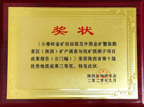 由我公司地調(diào)所編制完成的“小秦嶺金礦田深部及外圍金礦整裝勘查區(qū)(陜西)礦產(chǎn)調(diào)查找礦預(yù)測(cè)子項(xiàng)目(石門(mén)幅)成果報(bào)告”獲陜西省第十屆優(yōu)秀地質(zhì)成果三等獎(jiǎng);張歡歡同志撰寫(xiě)的“陜西小秦嶺金礦床三位一體勘查區(qū)找礦預(yù)測(cè)地質(zhì)模型及找礦意義”獲優(yōu)秀地質(zhì)論文一等獎(jiǎng);李長(zhǎng)壽同志撰寫(xiě)的“陜西小秦嶺金礦田石英脈型金礦床石英熱釋光特征及其找礦意義”獲優(yōu)秀地質(zhì)論文三等獎(jiǎng)。
