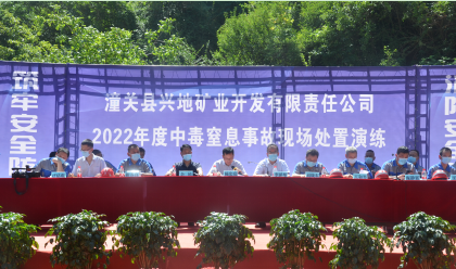 為增強(qiáng)職工安全防范意識(shí),提高應(yīng)急處置能力。7月7日,興地公司在善車(chē)峪西溝185二坑組織開(kāi)展了“中毒窒息事故”應(yīng)急救援演練。特邀潼關(guān)縣應(yīng)急管理局局長(zhǎng)楊宏亮、集團(tuán)公司安保部主任李延彤等到場(chǎng)觀(guān)摩指導(dǎo)。公司黨委書(shū)記、執(zhí)行董事劉曉東、黨委副書(shū)記、總經(jīng)理王和平等出席演練活動(dòng)。