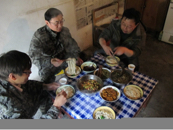 午飯,在坑口作業(yè)區(qū)吃工作餐,哈哈,你猜對了,又是面條。