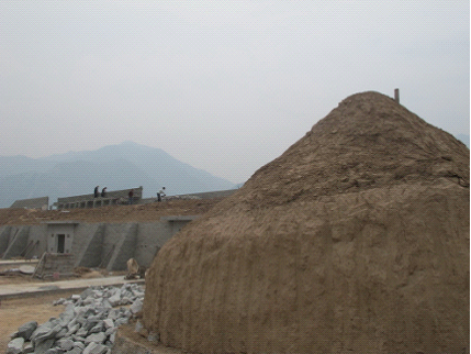 從720坑口出來不遠(yuǎn)處,我們來到了一個在建的五噸的炸藥庫,該炸藥庫由公安、安監(jiān)等部門批準(zhǔn)建立,為開掘平硐提供炸藥。炸藥庫為封土坑道式建筑,炸藥和雷管分別堆放,圈墻圍院,外設(shè)值班室和消防水池。龐總向我們介紹了炸藥庫人、物、技、犬四防標(biāo)準(zhǔn),以及消防問題等。