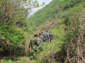 中午時分,我們走完了1.8公里的修測路線,鑒于學習小組成員體力問題,決定放棄了開路上山看剖面從頂峰返回的計劃,臨時更改為原路返回。事后了解到,今天將我們累了半死的修測工作,工作量相當于每天區(qū)調(diào)工作量的十分之一,區(qū)調(diào)工作的辛苦程度可想而知。疲憊不堪的我們驚訝之余,向野外地質(zhì)工作者致以崇高的敬意。