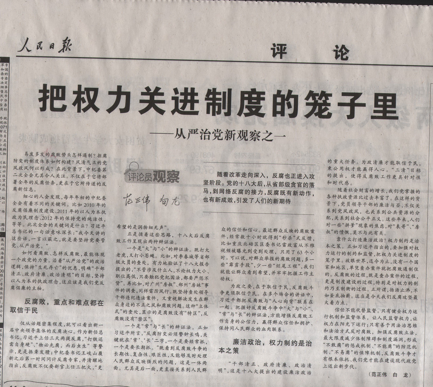把權(quán)力關(guān)進(jìn)制度的籠子里